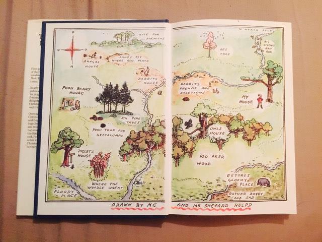 Also, this is a book that cannot be fully experienced on a kindle or any other form of screen. The magic of Pooh’s adventures radiates off the page due to the illustration of ‘Mr Shepard’, the colours illuminating the stories and warming our hearts. With this colourful edition, as E.H.Shepard added colour to his drawings 50 years after the initial publication, one has to hold the book to appreciate the craftsmanship and to follow the shape and literal mapping of the text and forest. The book is a piece of art in two ways: for the text itself, and the pictures within its binding.